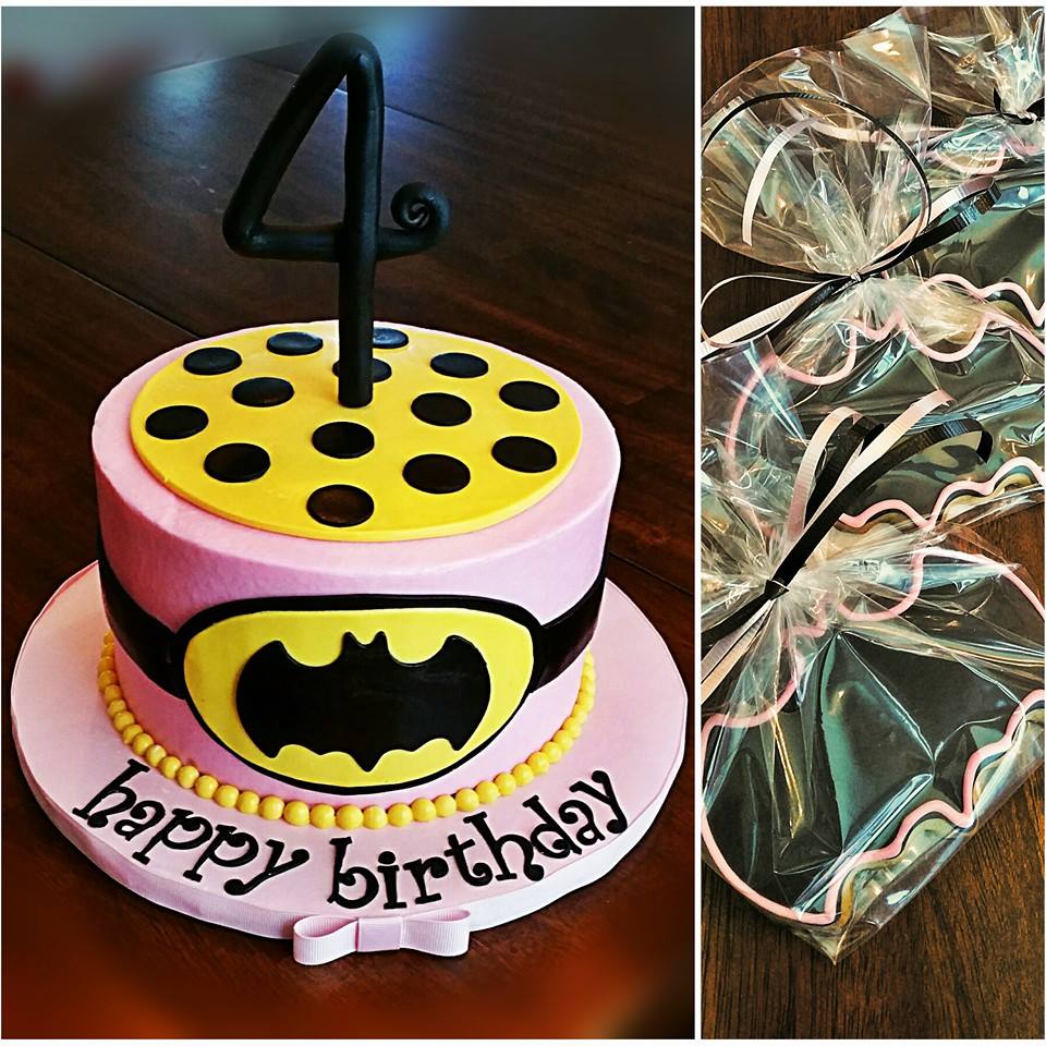 March 1, 2016November 17, 2016 by Blue Lily Treats Batgirl Inspired 4th birthday cake with decorated cookies Pink, yellow and black Batgirl themed cake with decorated black and pink bat cookies Share this: Share on X (Opens in new window) X Share on Facebook (Opens in new window) Facebook Share on Tumblr (Opens in new window) Tumblr Share on Pinterest (Opens in new window) Pinterest Email a link to a friend (Opens in new window) Email Like Loading...